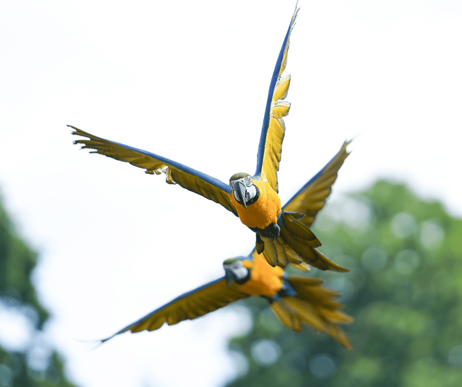 In the wild blue and gold macaws inhabit rainforests, woodland and savannahs of tropical South America.