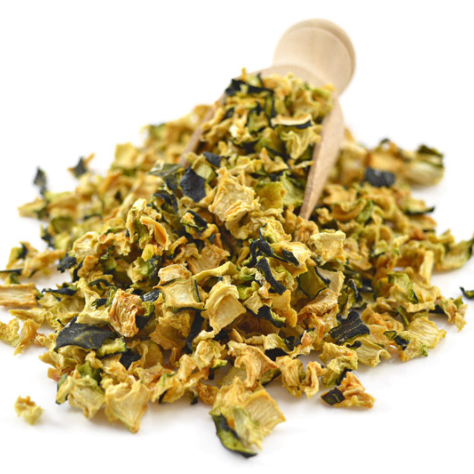 Courgette is a low-calorie vegetable that provides hydration, vitamin C, and potassium—important for heart and muscle function. Freeze-dried or air-dried forms retain nutrients and add texture variety to your parrot's diet. They also support healthy digestion and add enrichment through crunch and colour.