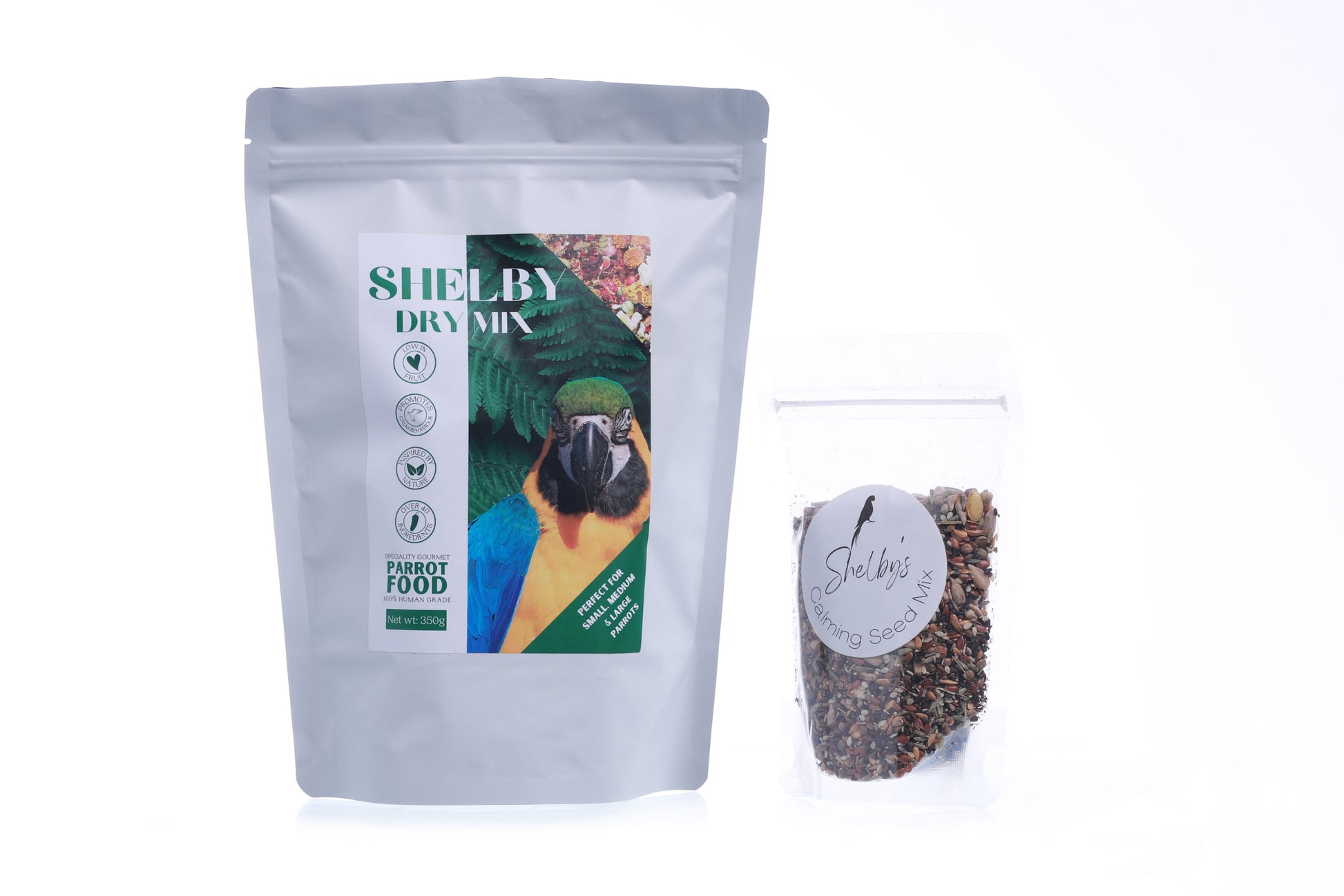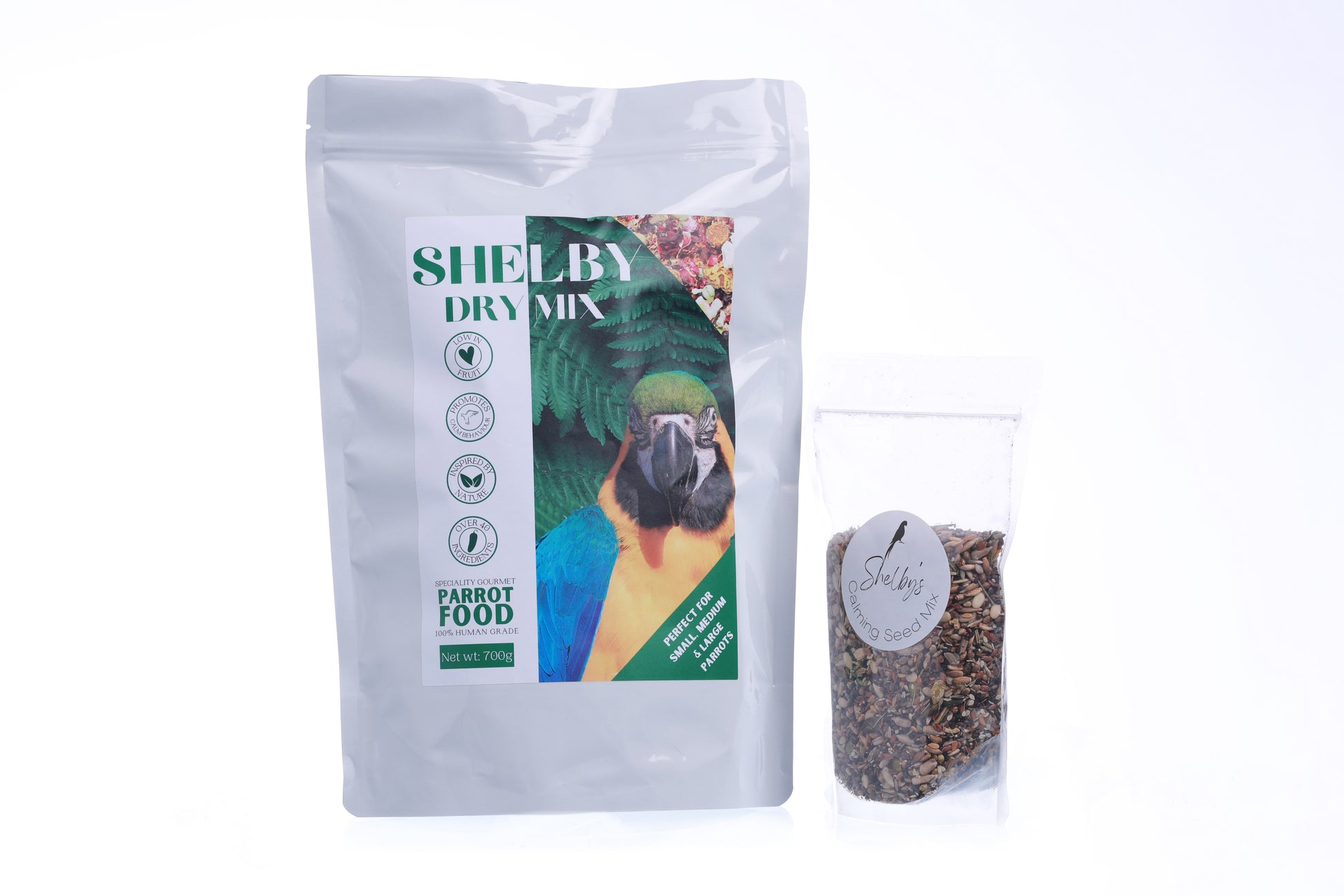 An ultra healthy combination of over 44 specially selected human grade, freeze-dried vegetables, freeze-dried fruits, flowers, herbs and spices for parrots of all sizes. The Shelby Dry Mix was created with ultimate health in mind, with each ingredient providing a concentrated variety of essential vitamins and minerals. This gourmet parrot food contains no fillers, nothing artificial or processed, is entirely natural and uses 100% human-grade ingredients, meaning we are proud to say there is no other parrot food on the market that compares.
