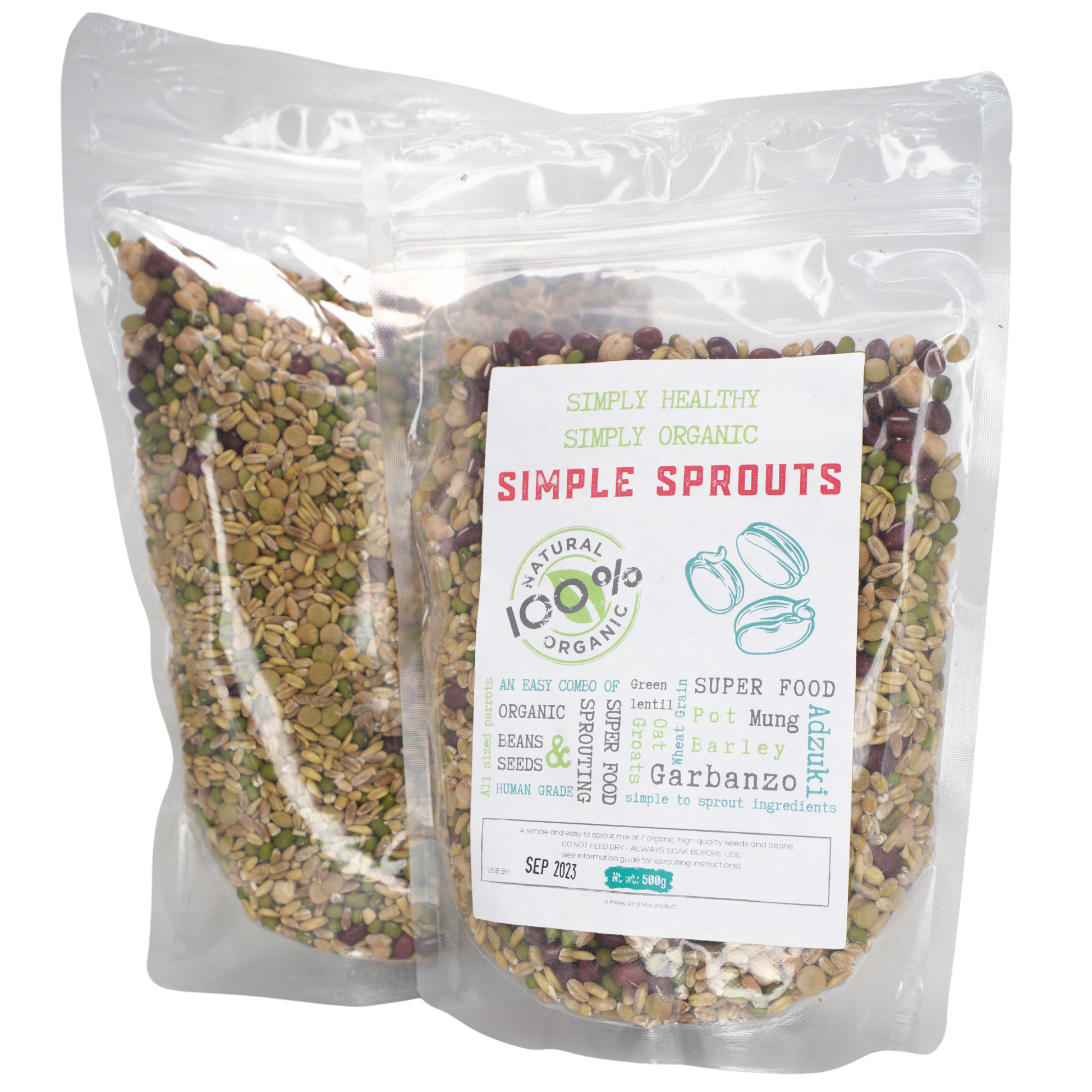 Our Simple Sprouting mix is a combination of 7 different organic seeds and beans, specifically for soaking and sprouting for your parrots - of all sizes!